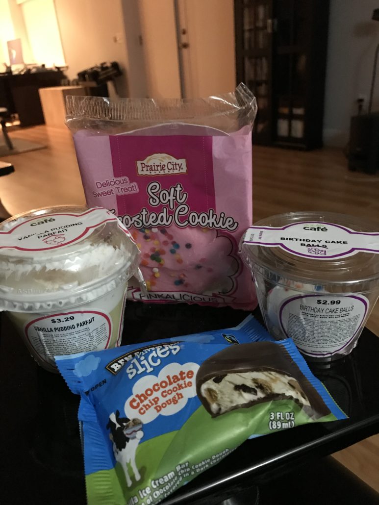 I looked around for quite a while picking out my goodies and in my search I even asked the gas station attendant if they sold tubs of icing there…like cake icing. You should have seen the way she looked at me, hahahaha. A look like “lady, are you ok?” I guess I looked as desperate as I felt.